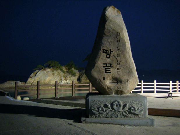 今回は仁川空港に着いた足で済州島に飛び、さらに莞島経由で“本土”に渡って全羅南道のいくつかの町を歩いてきた。なかでも半島最南端にあたるタンクッ(土末:ttangkkeut。画像は港にある石碑で、「韓半島最南端」の文字がみられる)は極めつきの田舎町で、さすがに独特の旅情を感じることができた。